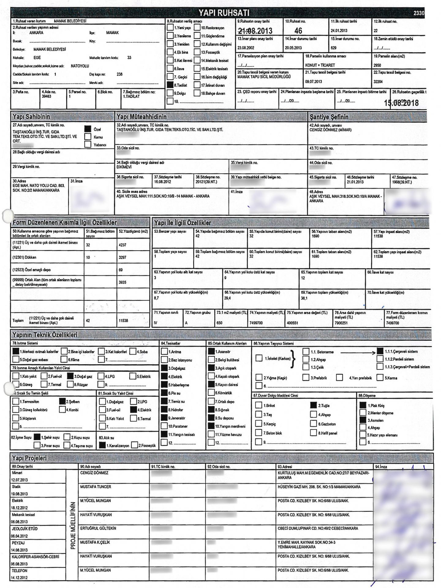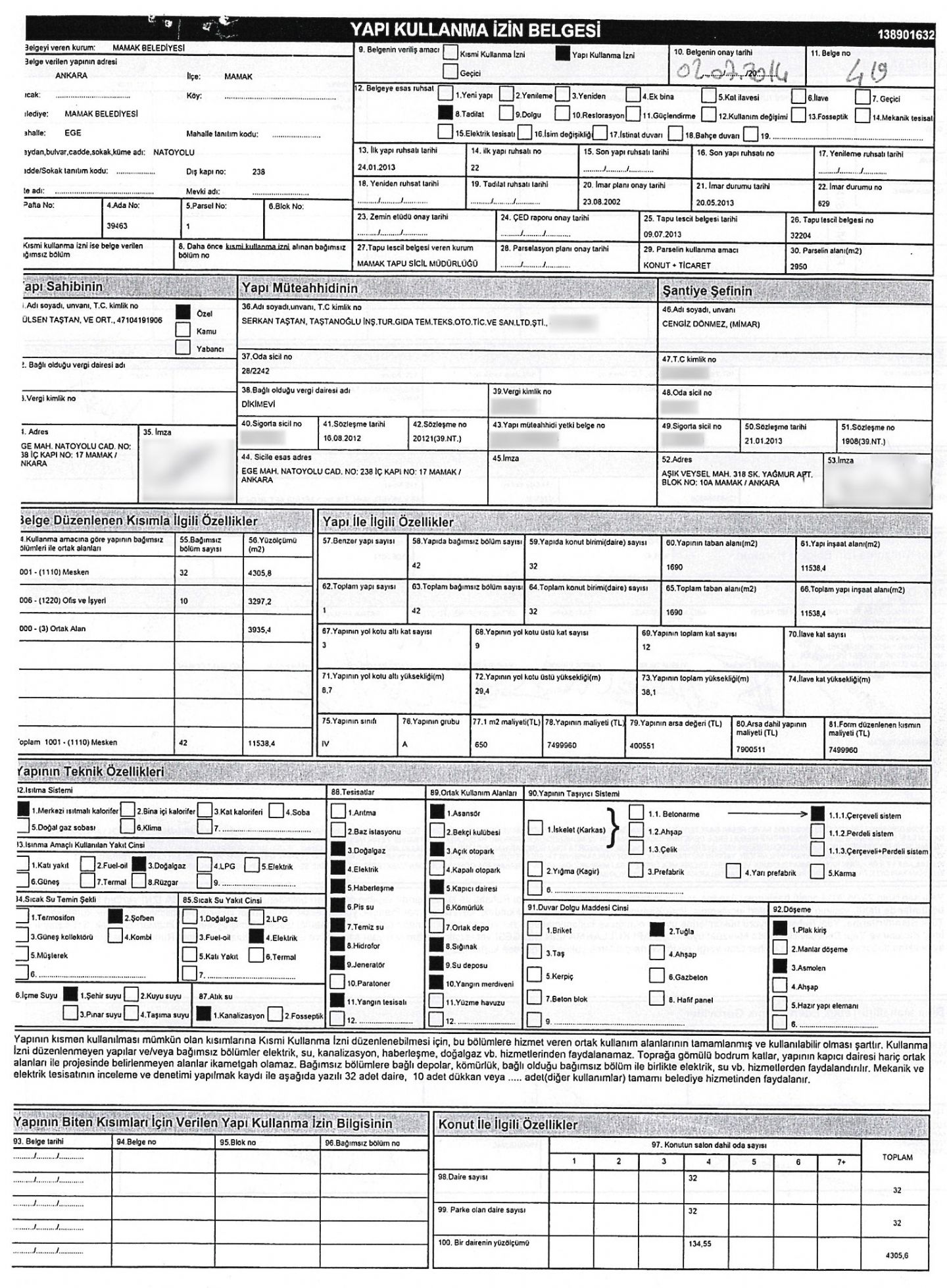 Ankara / Mamak Proje Adı: Taştanoğlu Sitesi Ada – Parsel: 39463 – 1 Bağımsız Bölüm: 32 Daire – 13 Dükkân Toplam İnşaat Alanı: 11538 M2