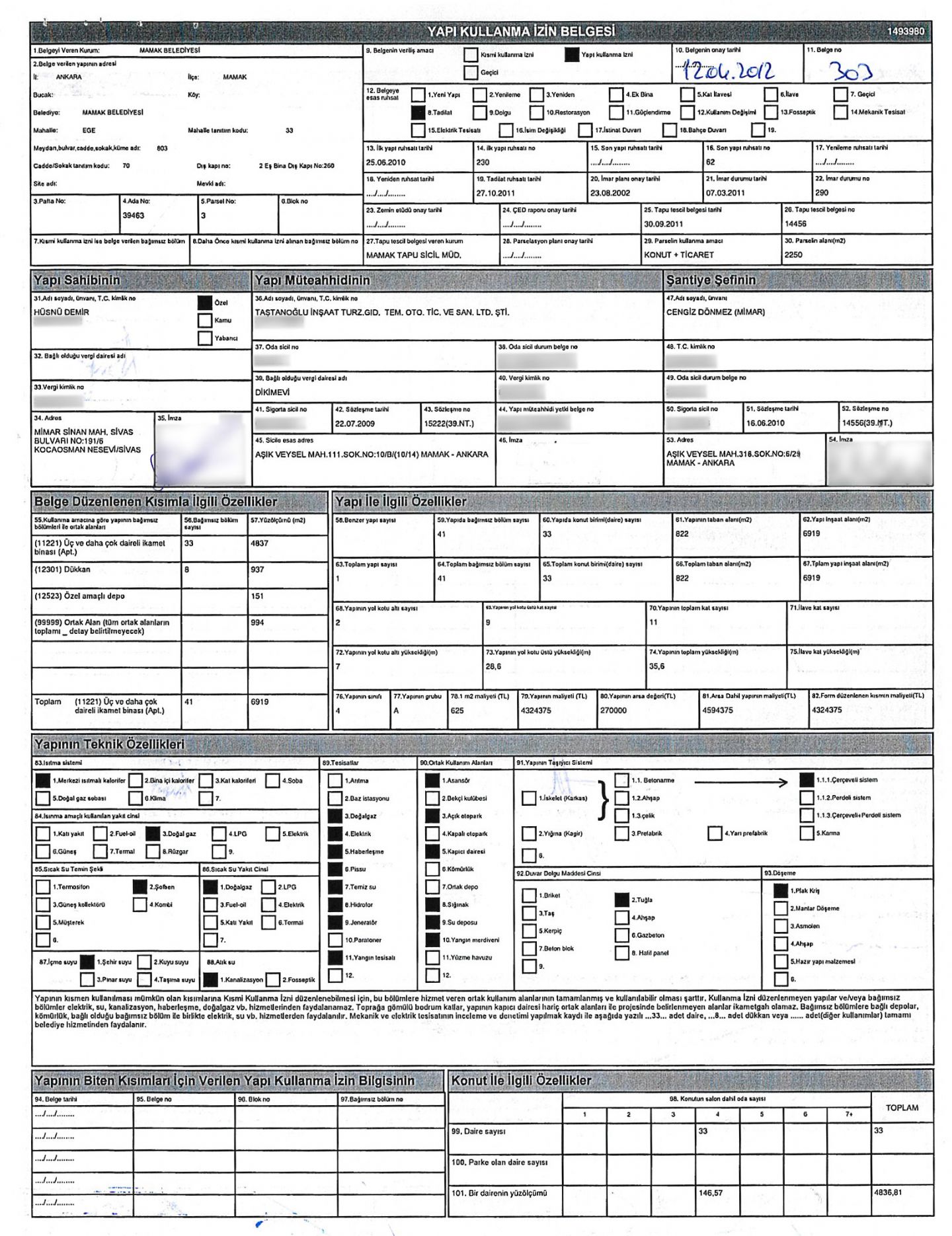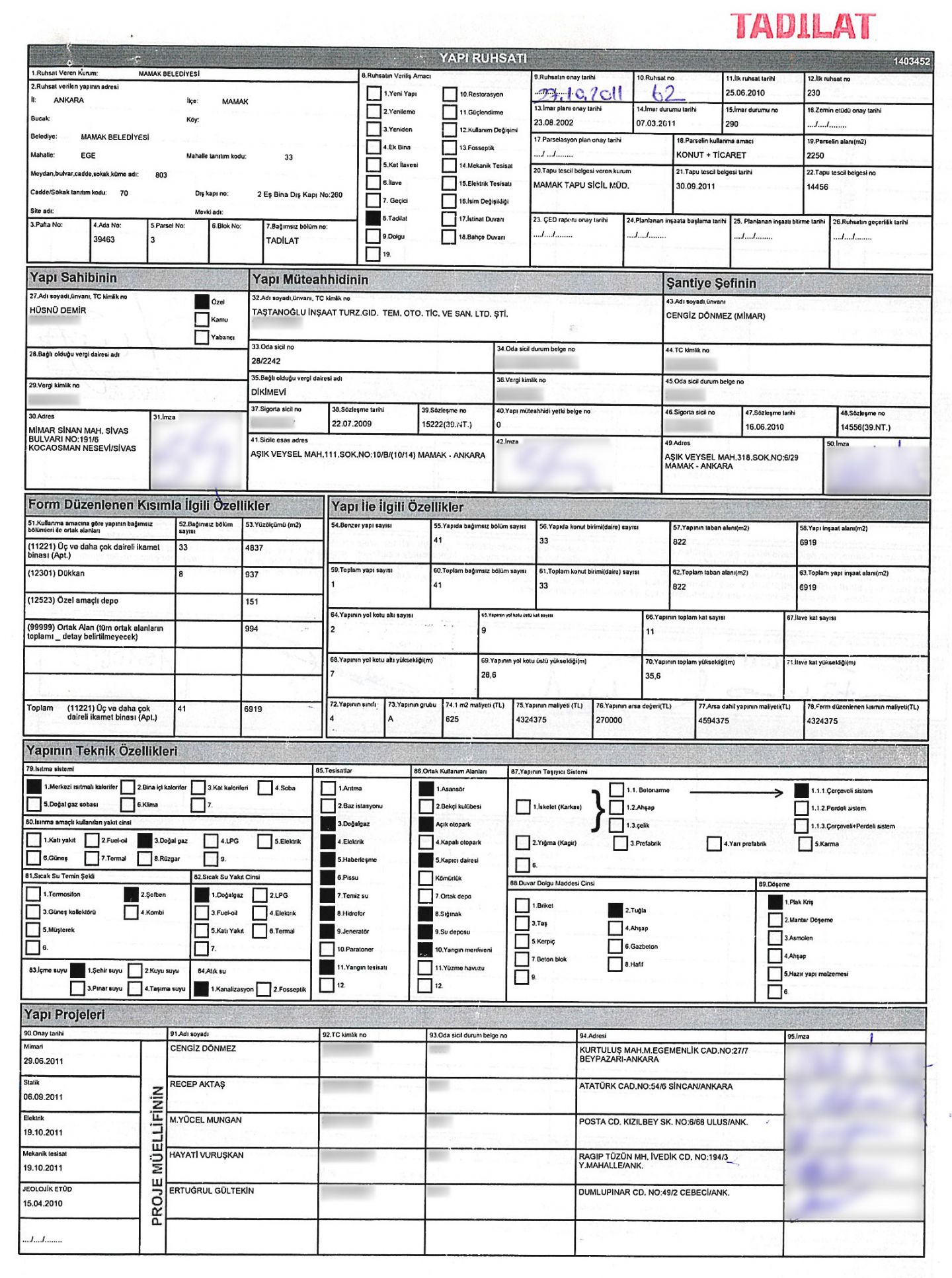 Ankara / Mamak Proje Adı: Taştan 2 Sitesi Ada – Parsel: 39463 – 3 Bağımsız Bölüm: 33 Daire – 8 Dükkân Toplam İnşaat Alanı: 6919 M2