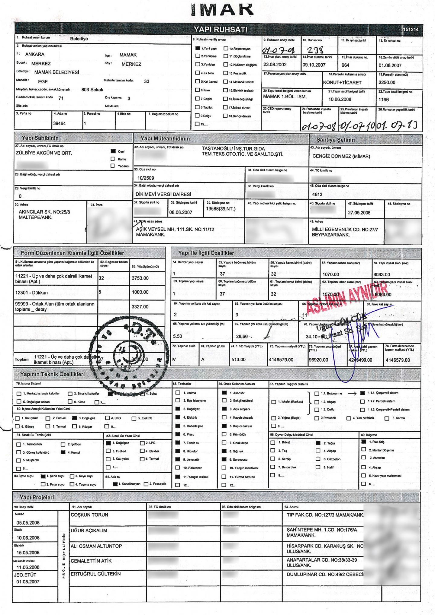 Ankara / Mamak Proje Adı: Çağdaş Sitesi Ada – Parsel: 39464 - 1 Bağımsız Bölüm: 32 Daire – 5 Dükkân Toplam İnşaat Alanı: 8083 M2 Adres: Ege Mahallesi
