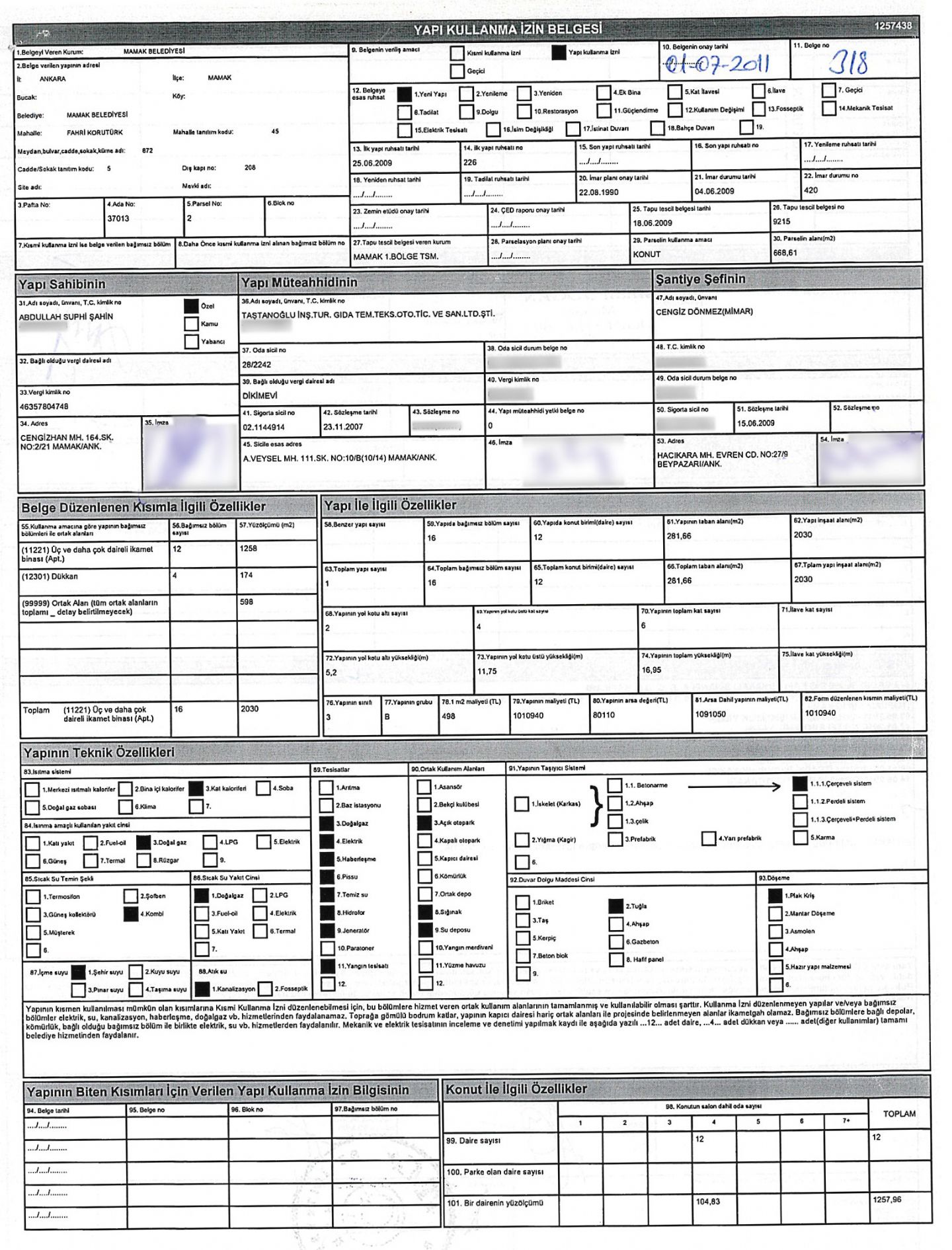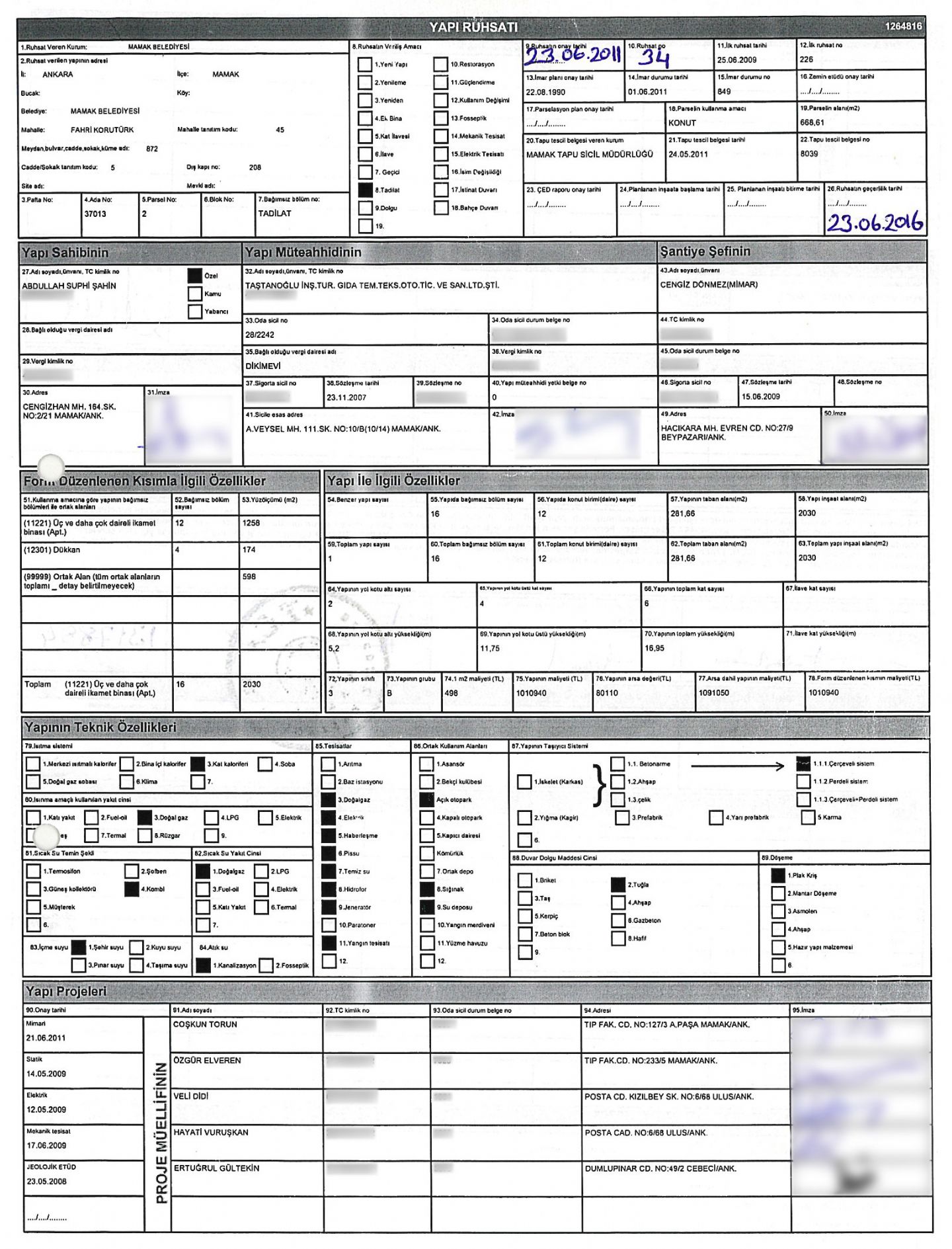 Ankara / Mamak Proje Adı: Abdullah Suphi Şahin Apt. Ada – Parsel: 37013 - 2 Bağımsız Bölüm: 12 Daire – 4 Dükkân Toplam İnşaat Alanı: 2030 M2 Adres: Fahri Korutürk Mahallesi
