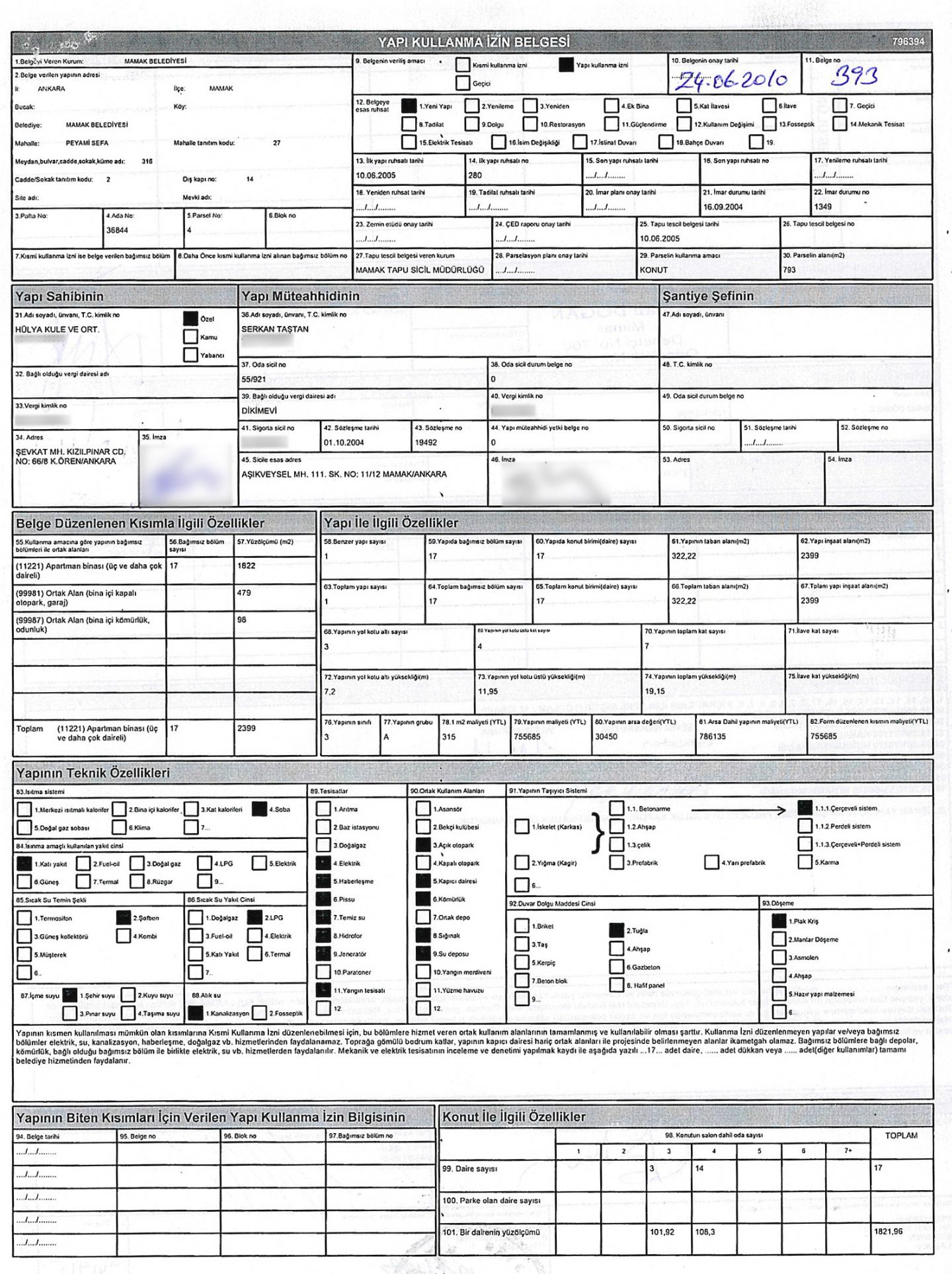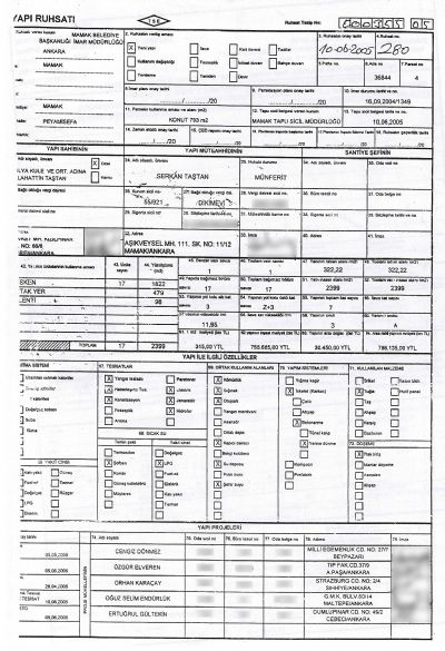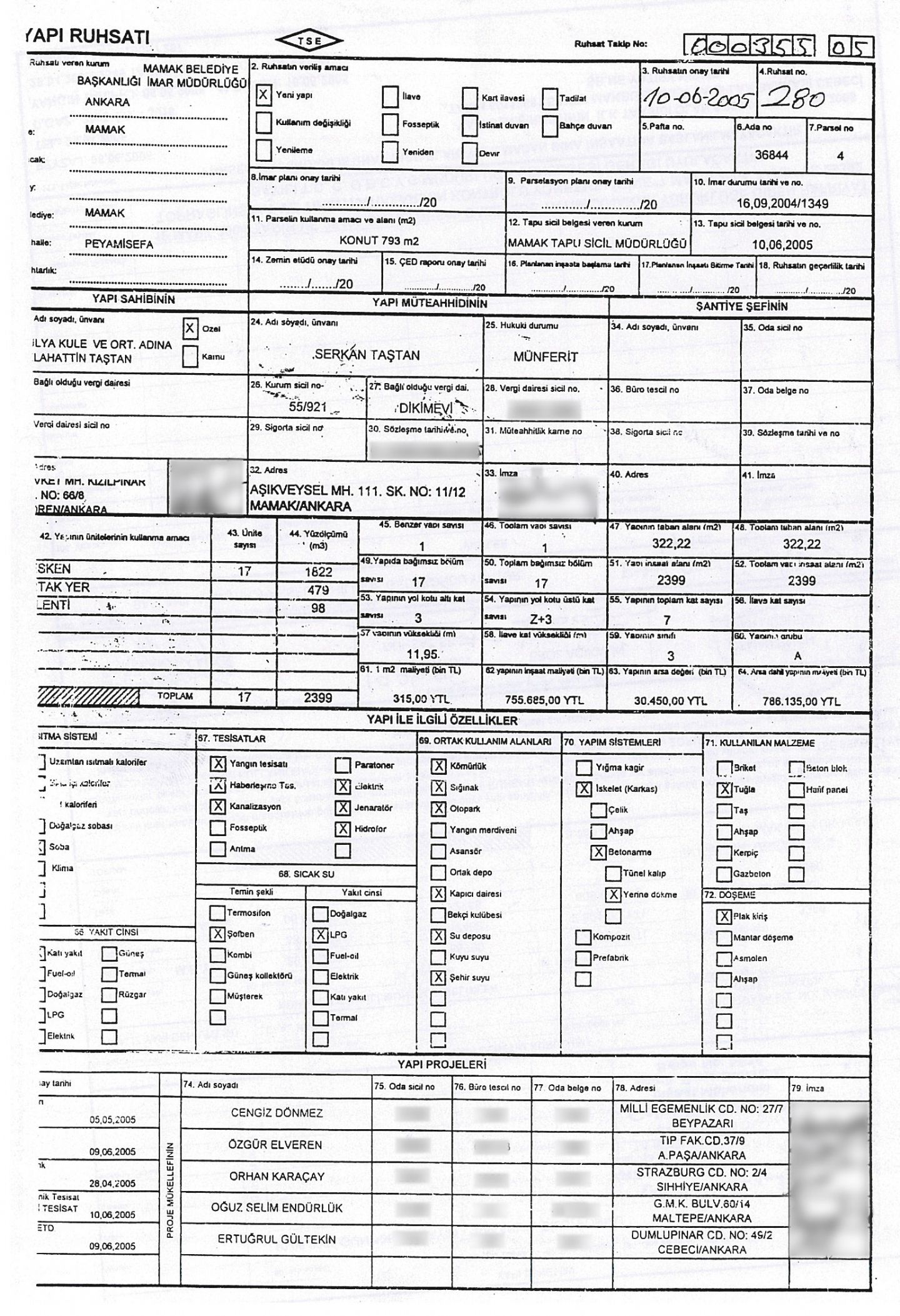Ankara / Mamak Proje Adı: Gülsen Hanım Apt. Ada – Parsel: 36844 – 4 Bağımsız Bölüm : 17 Daire Toplam İnşaat Alanı: 2399 M2 Adres: Peyami Safa Mahallesi